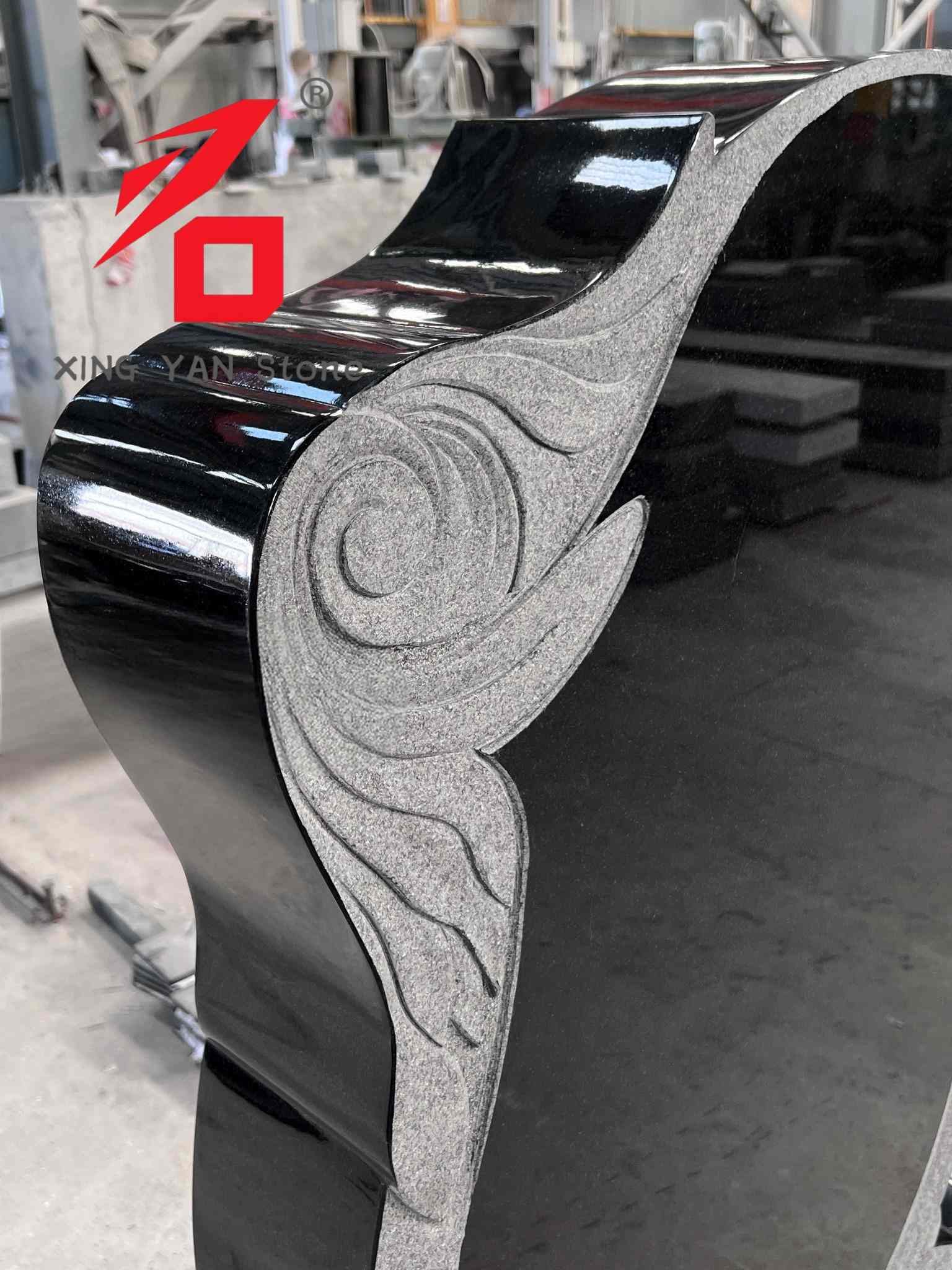 المواد: جرانيت أسود ورمادي مختار عالي الجودة. يتميز الجرانيت الأسود بلمعان عالي وملمس كريم، بينما يتميز الجرانيت الرمادي بملمس ناعم وخصائص نحت ممتازة. يعزز الربط ذو الطبقة المزدوجة العمق البصري والجاذبية الفنية.