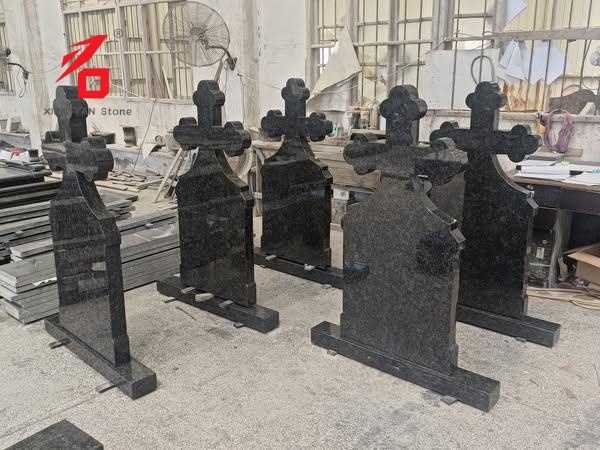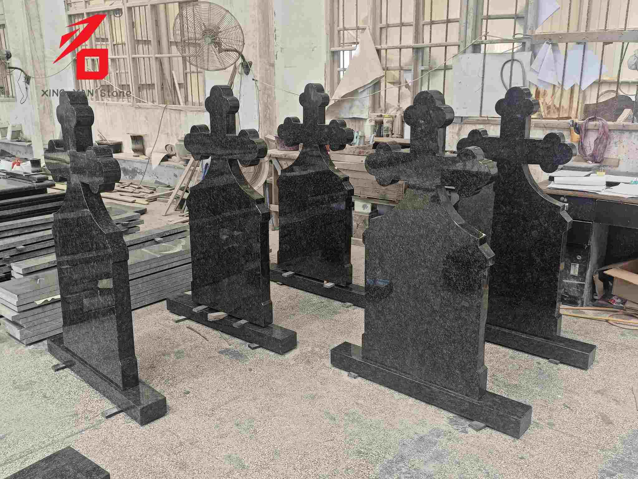 المواد: تم اختيار الجرانيت الأسود عالي الكثافة، ويتميز بخصائص الحجر الكثيفة والصلبة، ومقاوم للطقس ومقاوم للتآكل. يخضع السطح لمعاملة تلميع دقيقة، مما يوفر لمعانًا عاليًا وملمسًا موحدًا. تم تصميمه للاستخدام الخارجي لفترة طويلة، فهو يقاوم البهتان والتشوه، مما يضمن المتانة والسلامة البصرية لشاهد القبر.
