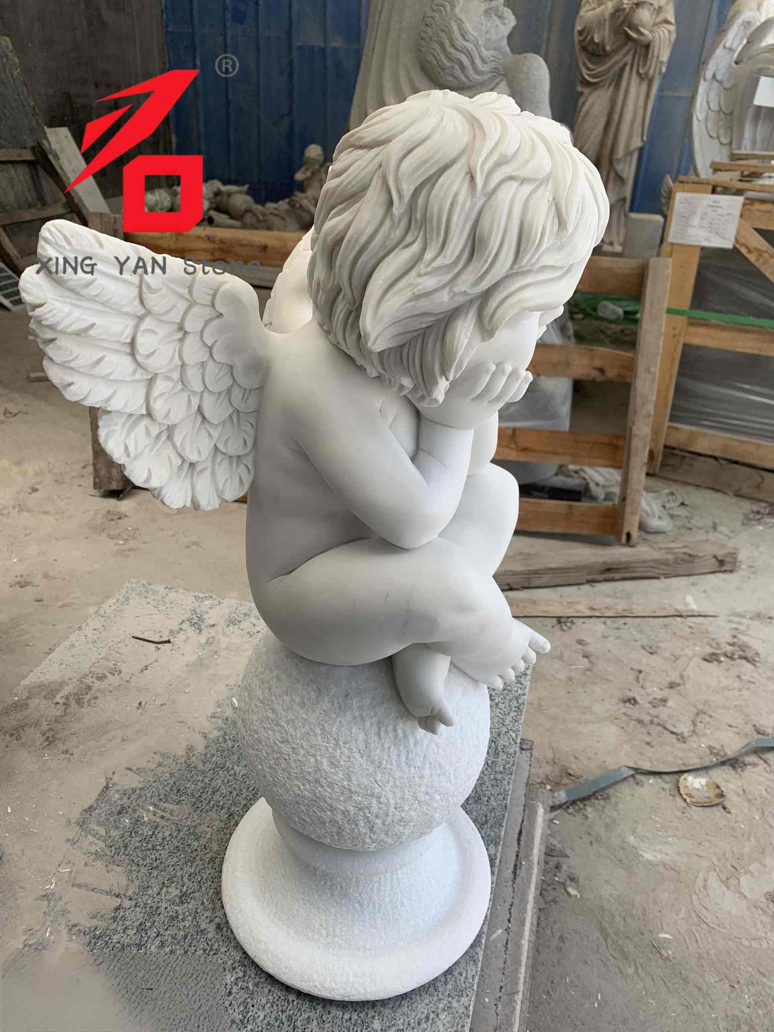 الصنعة: منحوتة يدويًا بحتة. يقوم الحرفيون بنحت تعبيرات وجه الملاك بدقة، وملمس الشعر المجعد، وتفاصيل الجناح، ووضعية الجسم. لقد تم صقل كل خط بشكل متكرر، مما يقدم تأثيرًا فنيًا نابضًا بالحياة.